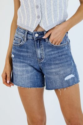 Eliza Medium Wash High-Rise Distressed Denim Shorts