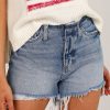 Aubrey Medium Wash High-Rise Drawstring Denim Shorts