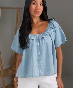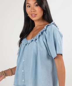 FINAL SALE – Something New Light Denim Blouse