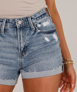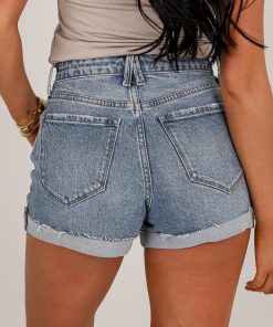 Step into effortless summer style with the Tori Medium Wash High-Rise Denim Shorts! Crafted from a durable medium wash denim, these shorts feature a flattering high-rise waist that cinches you in just right. The relaxed fit and frayed, distressed detailing give them that perfectly worn-in, laid-back vibe. Whether you’re pairing them with a casual tee or a breezy blouse, these shorts are a must-have for sunny days, beach trips, and everything in between! Slightly Stretchy Medium Wash Denim Fabrication High-Waisted Button + Hidden Zipper Fly Closure Slightly Distressed Belt Loops Classic 5-Pocket Cut Relaxed Fit Raw Frayed Cuffed Hems 99% Cotton, 1% Spandex Machine Wash Cold Inside Out, Tumble Dry Low Model is 5’4″ and wearing an X-Small.Garment Measurements in Inches:X-Small | Waist 26″ | Hips 32” | Length 13.5” | Inseam 3″Small | Waist 28″ | Hips 34” | Length 14” | Inseam 3.5″Medium | Waist 30″ | Hips 36” | Length 15” | Inseam 3.5″Large | Waist 32″ | Hips 38” | Length 15.5” | Inseam 3.5″X-Large | Waist 34″ | Hips 40” | Length 17” | Inseam 4″