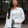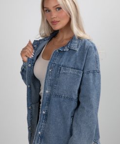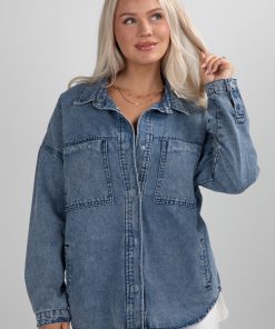With your favorite white tee and the Trending Moment Light Wash Denim Jacket, you’ll have an eye-catching look in an instant! This jacket combines classic denim style with a modern, oversized fit, offering a relaxed and effortlessly cool vibe. The light wash gives it a vintage, worn-in look that adds character and versatility, making it the perfect piece to layer over any outfit. Crafted from durable denim, this jacket features all the timeless details you love—button-up front, chest pockets with button flaps, and side pockets for added functionality. The oversized silhouette provides a comfortable, laid-back fit that’s perfect for layering over sweaters, tees, or dresses. Rolled cuffs and a slightly distressed finish add a touch of edge, making it a stylish choice for both casual and dressed-up occasions! Sturdy Light Wash Denim Fabrication Collared Neckline Functional Snap Front Closure Long Sleeves with Functional Snap Cuffs Oversized Fit Scoop Hem Side Pockets Front Pockets 60% Cotton, 40% Polyester Machine Wash Cold Inside Out, Hang to Dry Model is 5’6″ and wearing a Small.Garment Measurements in Inches:Small | Bust 46” | Waist 46” | Length 28”Medium | Bust 48” | Waist 48” | Length 28″Large | Bust 50” | Waist 50” | Length 29″X-Large | Bust 52” | Waist 52” | Length 30″