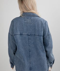FINAL SALE – Bundled Perfection Denim Cable Knit Sleeve Shacket